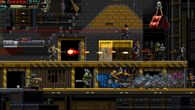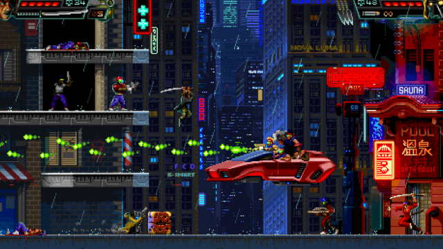 In a dystopian future overrun by criminal gangs, the city’s only hope rests with bounty hunters who are tasked with eliminating the corrupt underworld. “Huntdown” is a hard-boiled action-comedy arcade shooter featuring hand-painted 16-bit pixel art, fluid 60-FPS gameplay, and an epic synthesized soundtrack, where players can choose from three legendary bounty hunters to blast their way through 20 levels of neon-soaked 80s-inspired cityscapes. Engage in brutal combat against four unique gangs, utilizing a diverse arsenal of confiscated weapons, and take on infamous gang bosses in this single-player or co-op experience that combines classic run-and-gun mechanics with modern design sensibilities.